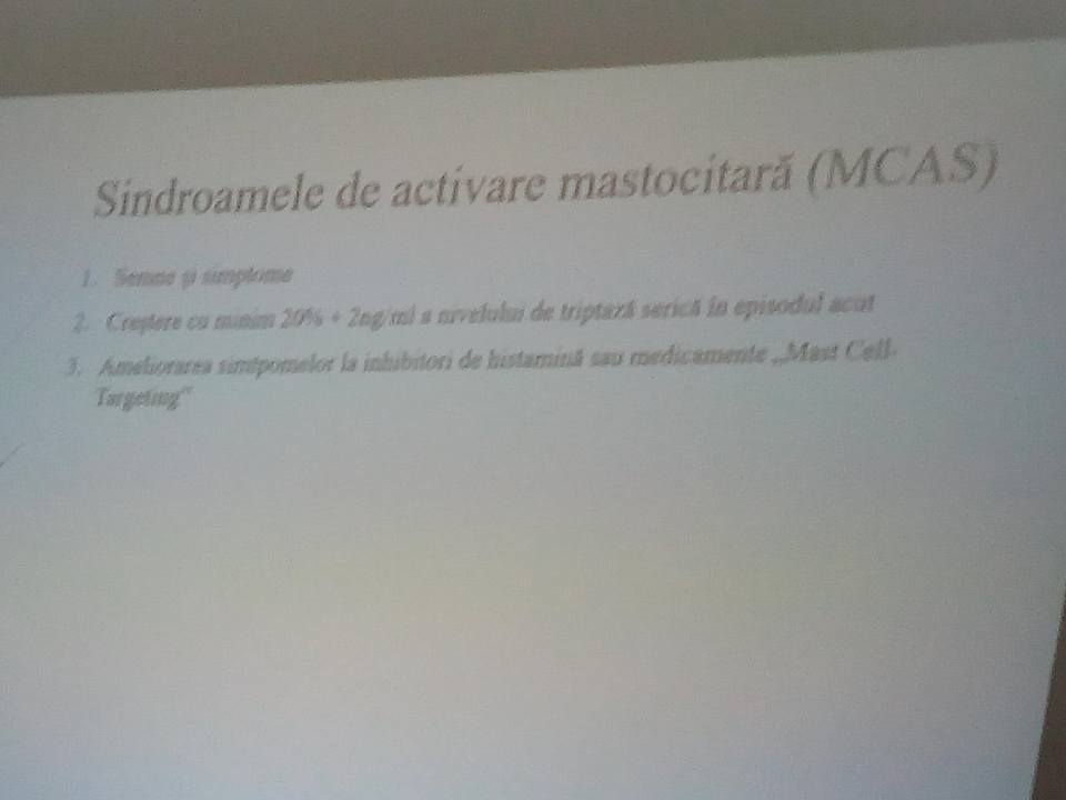 Au fost prezentate ultimele noutăți de la Congresul de Mastocitoza de la Salerno precum și noile criterii de încadrare a Sindromului de Activare Mastocitara.